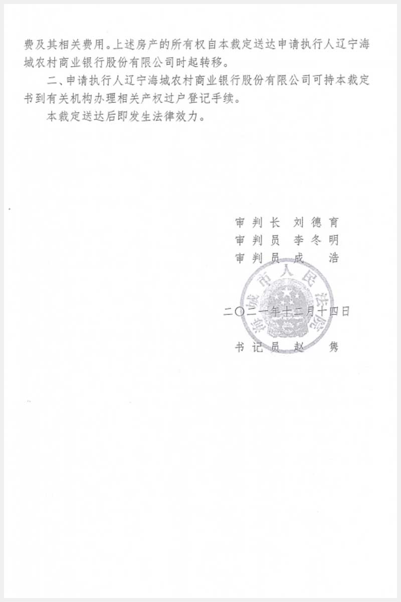 地址:海城經(jīng)濟(jì)技術(shù)開發(fā)區(qū)二臺(tái)子委儷景佳園 標(biāo)的號(hào):188