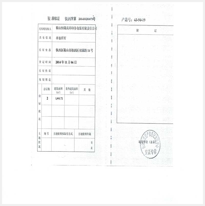 106號 鞍山市鐵西區(qū)雙圓路14號房產(chǎn)及土地使用權(quán)